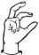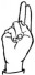 На ћирилици написано ВУКОСАВ ТЕРЗИЋ састоји се из 13 слова [?]. Исписано ћириличном једноручном азбуком за глувонеме: